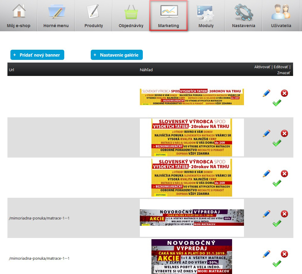 Možnosť nastavenia rôznych bannerov pre všetky kategórie e-shopu