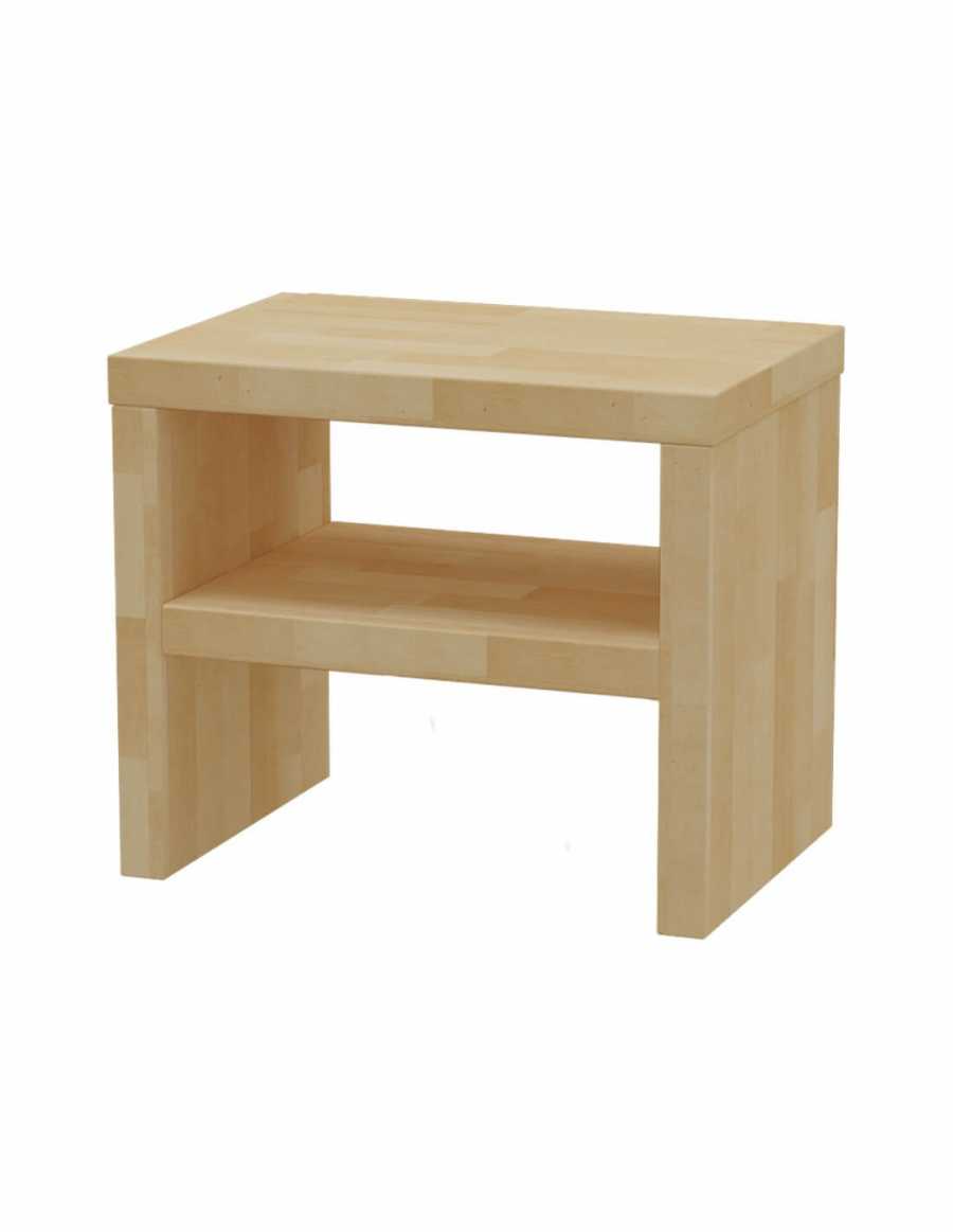 Nočný stolík TNS 1 z masívneho dreva v originálnom praktickom dizajne. Jednoduchý nočný stolík s policou.