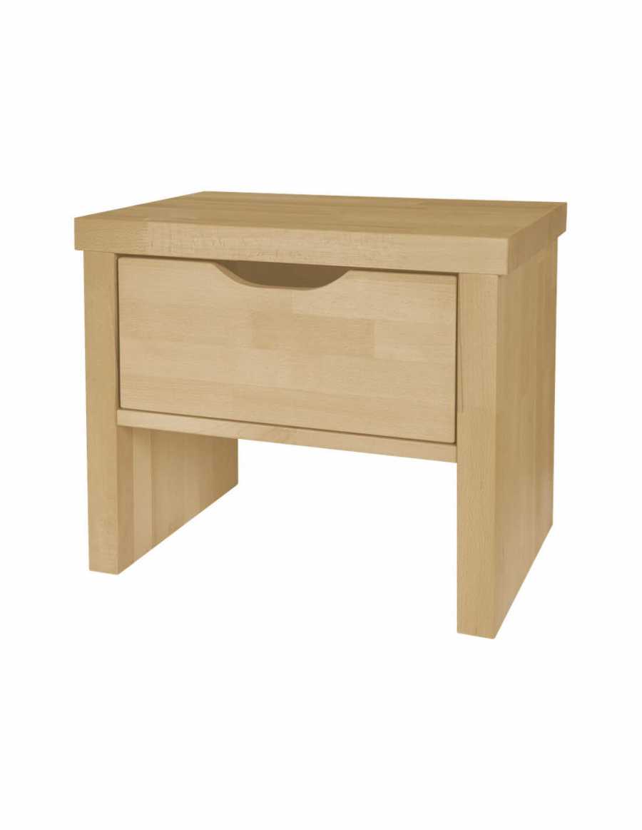 Nočný stolík TNS 6 z masívneho dreva v originálnom praktickom dizajne. Jednoduchý nočný stolík so zásuvkou s výrezom a guľôčkovým výsuvom v hornej časti.