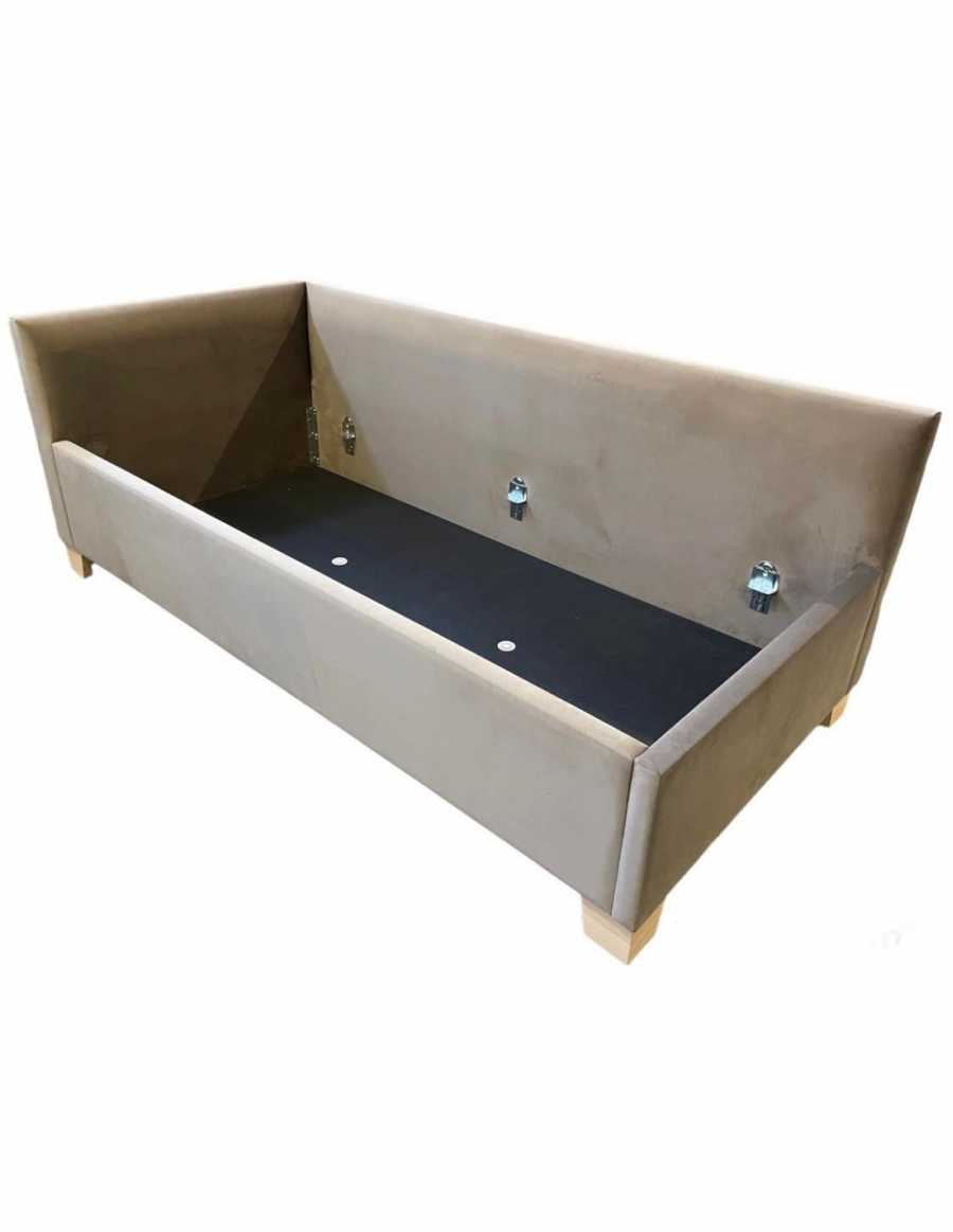 Luxusná jednolôžková čalúnená posteľ s masívnou drevenou konštrukciou a s možnosť dokúpenia úložného priestoru.