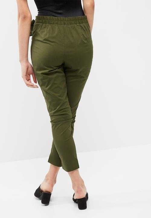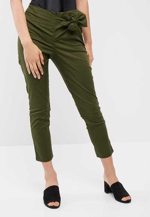 Tieto odvážne formálne nohavice majú vysoký pás s nápadným detailom vpredu. Ženský moderný vzhľad.