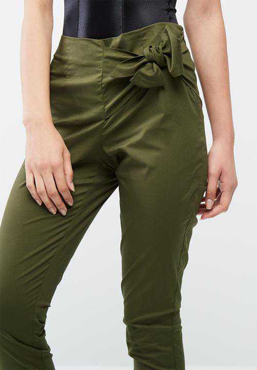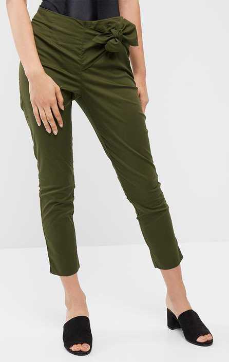 Tieto odvážne formálne nohavice majú vysoký pás s nápadným detailom vpredu. Ženský moderný vzhľad.