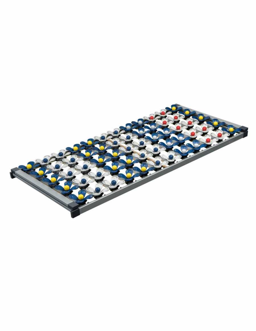 - bodové uloženie pružiacich guličiek a lupeňov v 7 zónach tvrdosti po celej ploche roštu zaisťuje dokonalé kopírovanie matraca a poskytuje telu optimálnu fyziologickú oporu pri všetkých polohách spánku